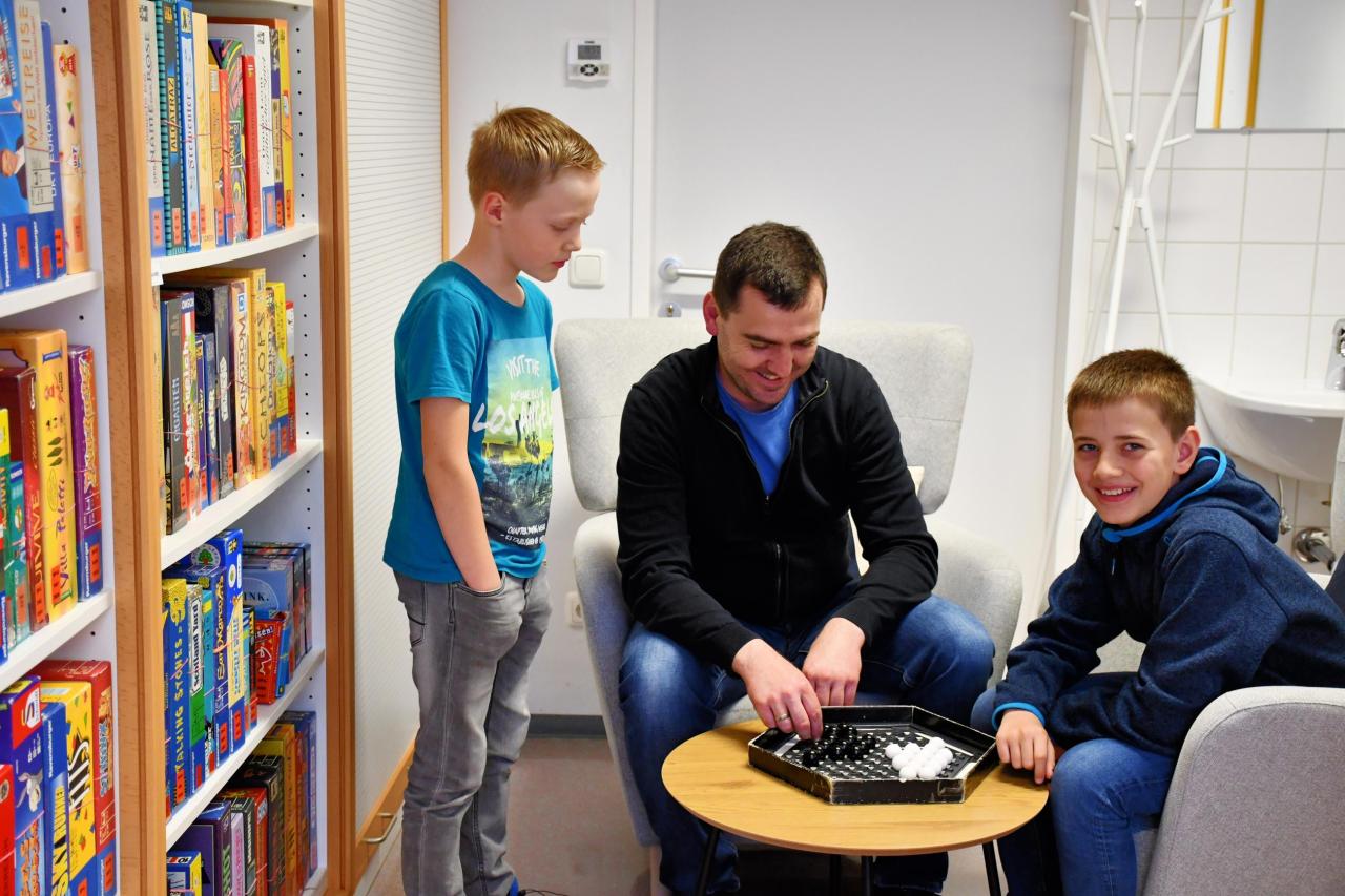 Männer unter sich (nur auf diesem Bild) beim Spielabend in der Öffentlichen Bibliothek Dimbach.